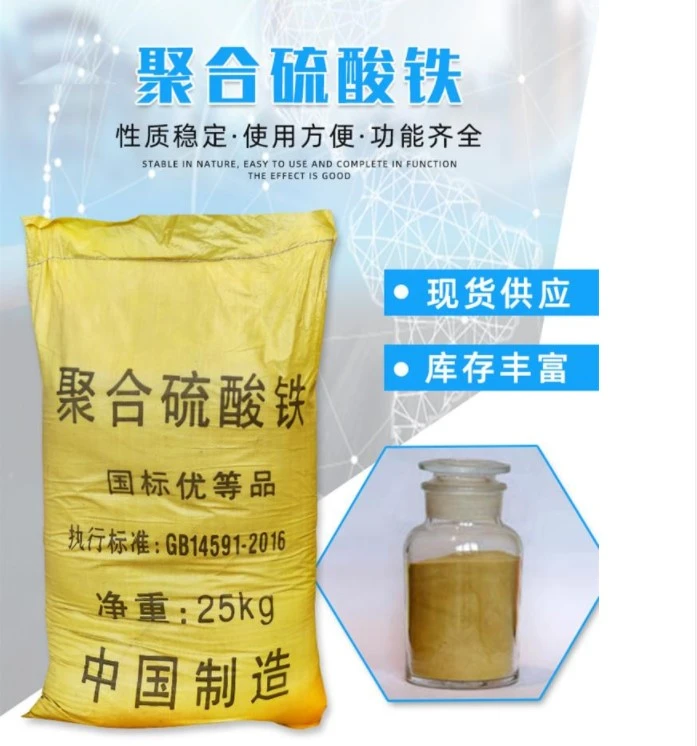 聚合硫酸铁主要用于饮用水净化和工业污水处理等,絮凝力强、矾花大、沉速快、腐蚀性小。对水中的SS、CODcr、BOD5色度有很高的去除率,处理成本低,操作方便。